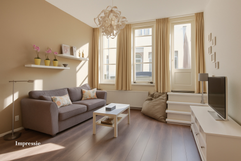 2e verdieping: privé-entree, ruime hal met keurig toilet met fontein. Twee ruime slaapkamers aan de voorzijde, waarvan één met grote schuifkastenwand. Inpandige badkamer (geheel licht betegeld) voorzien van een grote douchecabine, dubbele wastafel met meubel en designradiator. Bergruimte met wasmachineaansluiting en cv-ketel (2010). Aan de achterzijde van de woning bevindt zich de heerlijk ruime woonkamer (35 m²) met een glazen pui van 5.50 meter breed! Nette semi-open keuken (wit) met donker L-vormig kunststof aanrechtblad, 1,5 rvs spoelbak, inductie kookplaat (2013), koelkast (2014), vriezer, combi-magnetron, wasemkap en vaatwasser (2025).